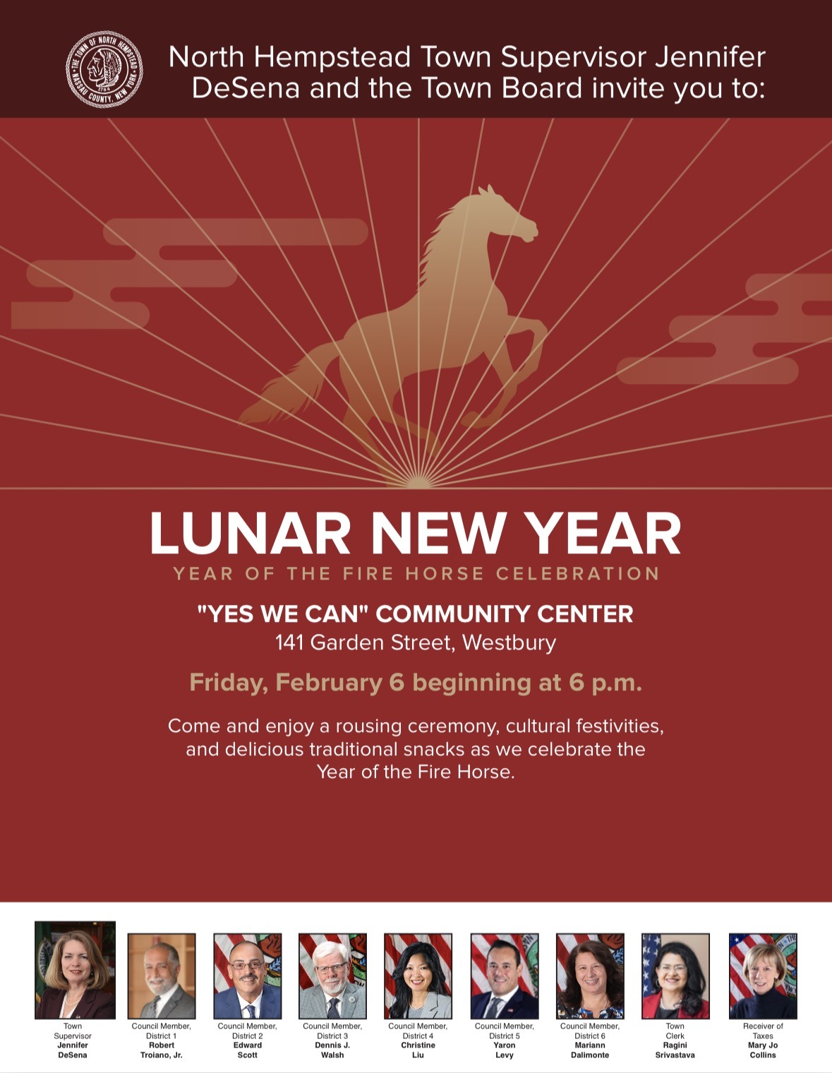 On Feb 6th, 2026, North Hempstead Town also hosted the 2026 Chinese New Celebration at Yes We Can Community Center.